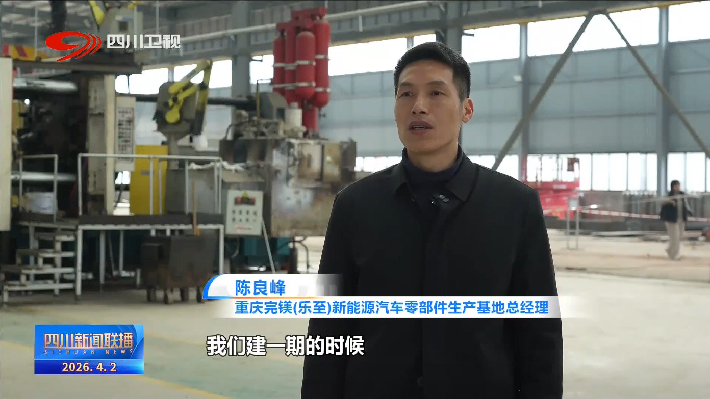 重庆完镁(乐至)新能源汽车零部件生产基地总经理 陈良峰:我们建一期的时候也是没有想到有这么多的订单。由于乐至的区位优势,吸引了周边很多的链主企业和主机厂商,目前(订单)是2000多万套了,所以说我们要抓紧时间建设二期规划项目。